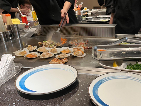 服務(wù)態(tài)度良好,廚師會(huì)與客人互動(dòng),表演火焰秀之類的技巧,增添用餐趣味。