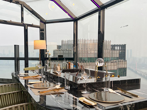 高空江景:餐廳處于 37 層高空,設有大落地窗,視野開闊,能將錢塘江景、城市之門、大蓮花等城市地標盡收眼底 。無論是夕陽西下時的柔美余暉,還是華燈初上后的璀璨夜景,都格外迷人。