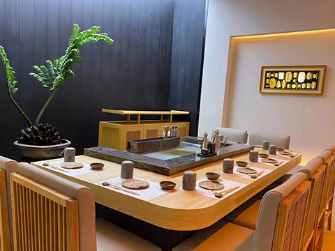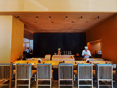 用餐體驗:餐廳使用原裝進口餐具器皿,每一件都是藝術(shù)品,喝清酒的杯子可以自己挑選,大廚現(xiàn)場制作,按食材從淺到深、口味從淡到濃的順序上菜,給顧客帶來極具儀式感的用餐體驗。