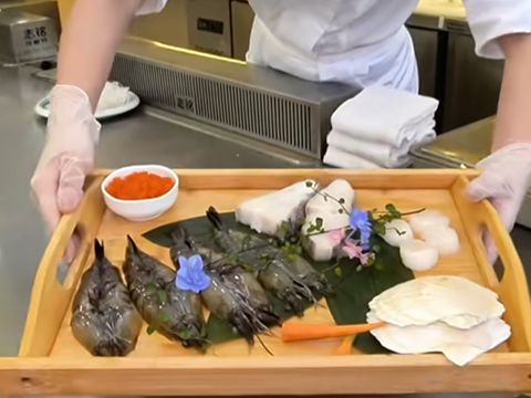 鐵板燒表演:廚師現(xiàn)場(chǎng)烹制(火焰表演、花式技巧),互動(dòng)感強(qiáng)。